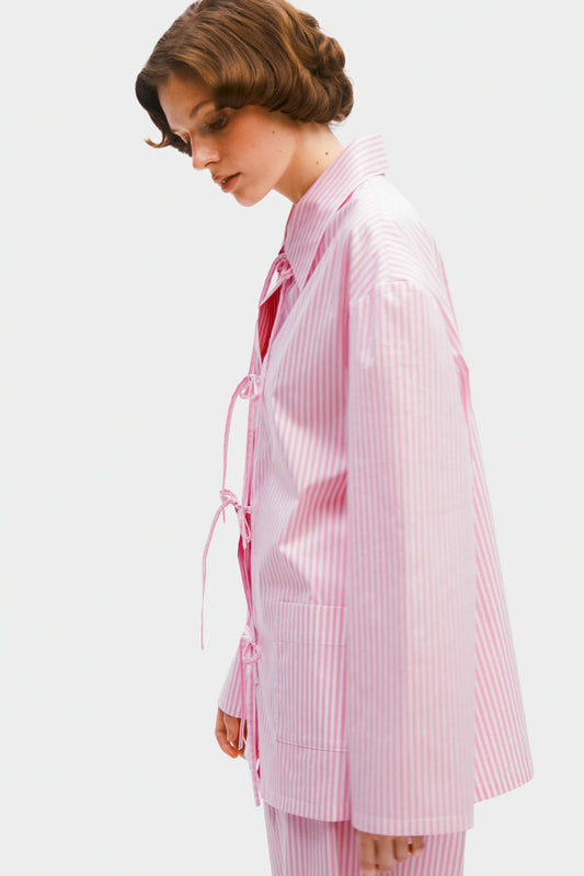 The Lyra Cotton-Poplin Pajama Set - Pink Stripes