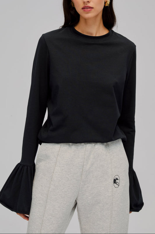 Ruffled Long Sleeve Stretch-cotton Jersey T-Shirt